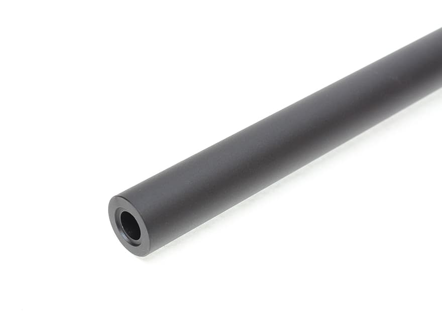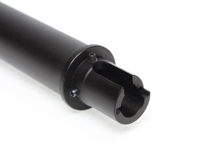 最大φ25mmにも及ぶ極太ヘビーウェイトバレルです。SR25に適合する位置にガスブロック用スリットが刻まれています。